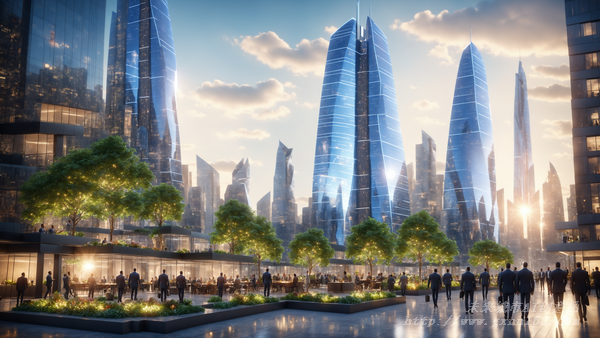 未來(lái)城市是科技與自然和諧共存的典范,高樓林立,智能建筑采用環(huán)保材料和能源自給系統(tǒng),減少碳足跡。街道上無(wú)人駕駛車(chē)輛穿梭,高效便捷??罩谢▓@和綠色走廊遍布,提升居民生活質(zhì)量。智能化管理系統(tǒng)確保城市運(yùn)行順暢,大數(shù)據(jù)分析預(yù)測(cè)并解決潛在問(wèn)題。居民享受個(gè)性化服務(wù),工作、生活與娛樂(lè)無(wú)縫銜接,創(chuàng)造一個(gè)可持續(xù)發(fā)展的美好未來(lái)。